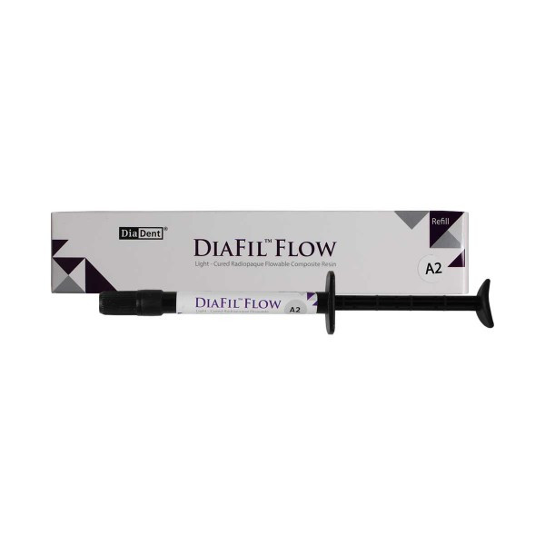 کامپوزیت فلو دیافیل دیادنت Dia Dent Diafil Flow Composite در دسته برترین کامپوزیت های دندانی قرار می گیرد. کامپوزیت دیافیل فلو دیادنت یک کامپوزیت میکروهیبریدی بر پایه رزین می باشد. بسته بندی کامپوزیت Dia Dent Diafil Flow Composite شامل 1 عدد سرنگ 2 گرمی است. این کامپوزیت برای ترمیم های مستقیم کلاس IV، V، III مورد استفاده قرار می گیرد. آزاد سازی فلوراید به منظور جلوگیری از پوسیدگی های ثانویه، هندلینگ راحت، رادیواپاسیتی مناسب، استحکام بالا و پایین ترین میزان شرینکیج از دیگر ویژگی های کامپوزیت فلو دیافیل دیادنت DiaDent Diafil Flow Composite به شمار می آیند. کامپوزیت برند دیادنت در سه رنگ A1,A2,A3 با قیمت مناسب