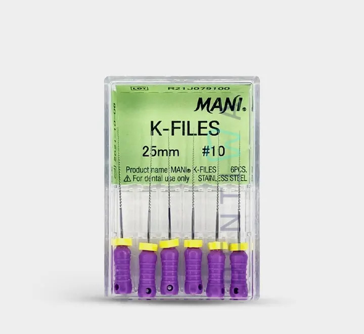 K فایل دستی مانی 31 میلی متر از فایل های دستی دندانپزشکی است که از آن برای درمان اندو استفاده می شود. به این صورت که ابتدا کانال توسط فایل دستی آماده می شود و سپس از فایل روتاری استفاده می گردد. فایل دستی Mani جزء پر مصرف ترین و با کیفیت ترین فایل های موجود در جهان است. دندانپزشکان می توانند با خیال راحت آن را از طریق سایت درنیکا سلامت سفارش دهند.