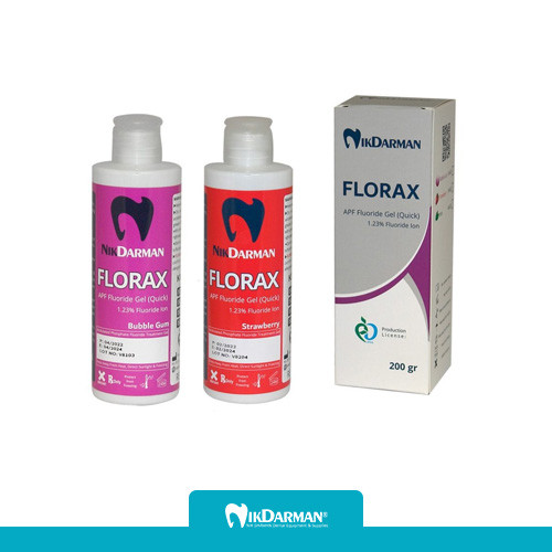 ژل فلوراید FLORAX حاوی سدیم فلوراید، جهت فلوراید تراپی می باشد که غلظت موضعی بالایی از یون فلوراید را داراست. یون فلوراید عاملی مهم در ممانعت از پوسیدگی و حساسیت دندان بخصوص در کودکان محسوب می گردد.