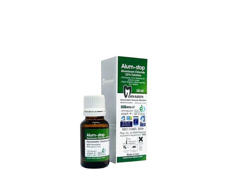 محلول انعقاد خون مروابن با نام تجاری آلوم استاپ، محصولی ایرانی و باکیفیت است که برای توقف سریع و آسان خونریزی در دندانپزشکی کاربرد دارد. این محلول با دارا بودن 25 درصد کلرید آلومینیوم، به عنوان یک هموستات موضعی عمل کرده و با انقباض عروق خونی، خونریزی را بند میآورد.